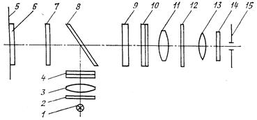 4-анализатор, 5-шкала поворота поляризатора, 6-телескопическая система
