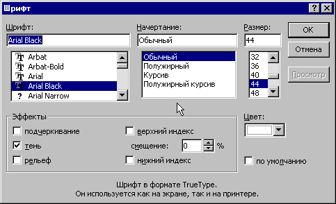 Создание эффекта рельефа и окно диалога Шрифт.