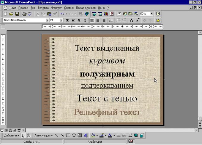 Чтобы фон слайда принял другой вид, можно изменить его цвет, оттенение, узор или текстуру. Кроме того, в качестве фона можно использовать какой-либо рисунок. При этом следует учитывать, что на слайде или в образце допускается только один вид фона. Например, фон выполняется в виде оттенения, текстуры или рисунка, но на любом отдельно взятом слайде используется только один из этих вариантов. Изменение, вносимое в фон, применяется только к текущему слайду или ко всем слайдам и образцу.