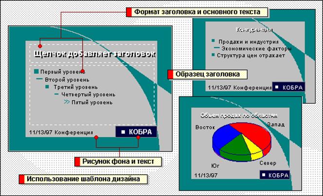 При применении к презентации шаблона оформления PowerPoint автоматически обновляет в образце слайдов стили текста и графику, а также изменяет цветовую схему.