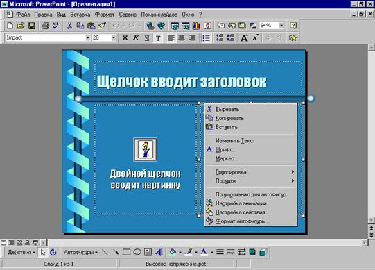 В режиме слайдов выберите в меню Формат