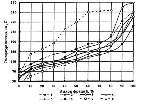 Рис. 1.1. Фракционный состав нефтей и конденсатов.