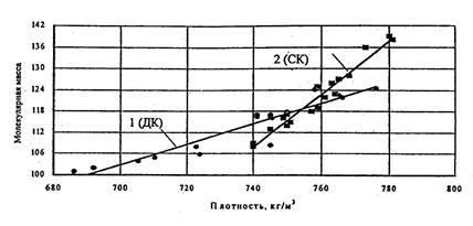 Рис.1.3. Зависимость молекулярной массы конденсата от плотности