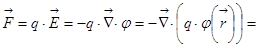 Между прочим, вот, в порядке упражнения полезно было бы для вас вычислить , и убедиться, что вы получите предыдущую формулу для напряжённости поля. Это, вот, для самопроверки (не в физике, а в математической квалификации), если вы её получите – это признак того, что вы владеете соответствующим в математике, если нет, –тогда пойдите к своему преподавателю мат. анализа, и пусть он вас там или научит, или накажет.