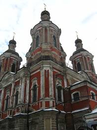 По обработке фасадов — это типичный памятник барочной архитектуры, но в основе его пространственного решения лежит простой кубический объем, увенчанный традиционным пятиглавием, насаждавшимся Елизаветой Петровной. Мощное пятиглавие храма хорошо скомпоновано и, выполненное также в принципах барокко (раскреповки антаблемента над сдвоенными колоннами световых барабанов, продолжающие их гурты куполов, контраст крупных глав и венчающих их главок и т. д.), органично сочетается с основным массивом здания, стены которого, не имеющие алтарных выступов, обрамлены теми же коринфскими колоннами с раскрепованным антаблементом, что и барабаны.