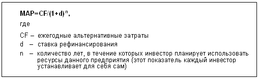 Следовательно, сумма, которую инвестор готов отдать за контроль над данным предприятием, при прочих равных условиях, не должна превышать его минимальных альтернативных издержек.