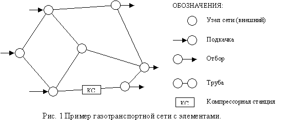 КС осуществляют увеличение давления между двумя внешними узлами ГТС с сохранением массового расхода газа за счет увеличения потенциальной энергии газа. Другими словами, КС поддерживают по времени определенный массовый расход в определенном направлении. Для полной характеристики КС нам необходимо учитывать физические характеристики КС, затраты газа на внутренние нужды КС и др. Но для упрощения модели КС можно задавать только изменение расхода газа Q0,j