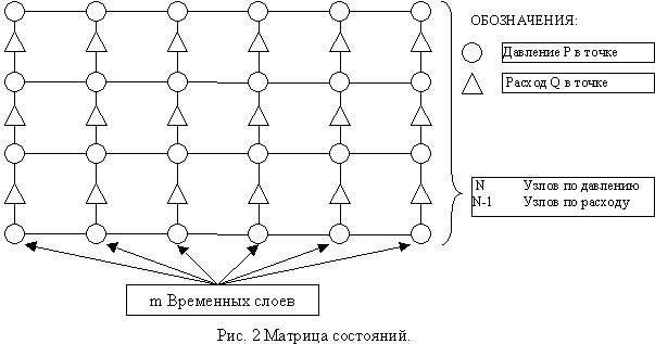 Необходимо принять во внимание, что во временном слое можно вычислить расход газа по соседним давлениям. А при перемещении по времени можно определить давление, если известно предыдущее состояние соседних по x расходов.