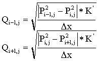 при стационарном течении газа между Pi-1,j
