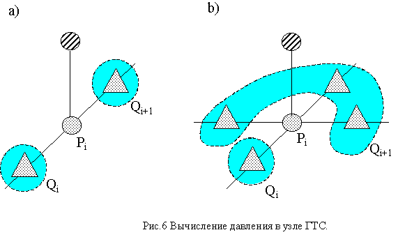 . Тогда давление в узле ГТС можно считать по тем же правилам (3), что и для узла трубы. Тем самым мы обобщаем правило расчета давления для любого узла системы: