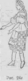На “и” — переступить на левую ногу на полупальцы, спереди-накрест правой ноги (рис. 25б).