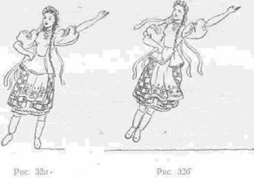 На “затакт и” — слегка присев на левой ноге, поднять правую невысоко в сторону (рис. 32а).