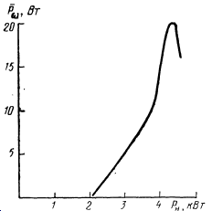 Рис. 6 Зависимость мощности излучения лазера ЛТИ-502 от мощности накачки