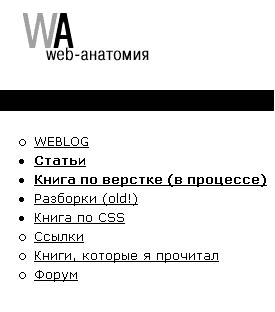 Как видите различия есть. Во-первых, списки имеют разные поля слева. Конечно, в обычном тексте это не принципиально, но когда необходимы жесткие выравнивания меню, то разница в 3 пикселя может быть заметна. Во-вторых, размер маркеров у списка в InternetExplorer заметно меньше, чем у остальных браузеров. Мне кажется, что в IE размер подобран лучше, и список смотрится аккуратнее. И, наконец, межстрочное расстояние в списках разное. Если в InternetExplorer оно равно 160%, то в Mozilla – 120% (как и элемента <p>). Кажется, что в Opera тоже задано 160%, но на самом деле, как это ни удивительно, в Opera тоже 120%. Кроме того, в Opera есть отступ сверху, тогда как в других браузерах нет.