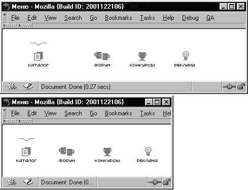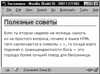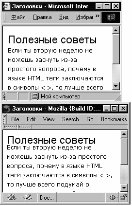 Заголовок прекрасно выглядит в браузерах InternetExplorer и Opera, но когда я посмотрел тестовую страничку в браузере Mozilla, то разочарованно поджал губы. На рис. 23 вид в браузере Mozilla показан справа.