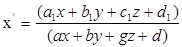 Преобразование (*) может быть выражено через матрицу проективных преобразований в однородных координатах: