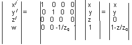 Представим перспективную проекцию объекта как проективное преобразование с центром проекции на оси z (на расстоянии zq