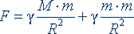 Из формулы (4) следует неаддитивность силы тяжести. Рассмотрим это на примере силы тяжести двух тел m