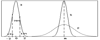 1,2 - графики с одним средним m и разными стандартными отклонениями s , причем s 1<s 2