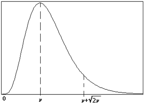 Рис.2. Плотность распределения вероятностей законаc 2, с n степенями свободы.