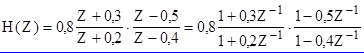 Разностное уравнение цепи: y(n) = x(n) + 0,8y(n-1)