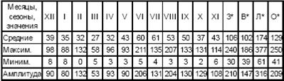 Примечание: З* – зима, В* – весна, Л* – лето, О* – осень.