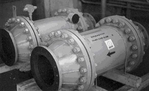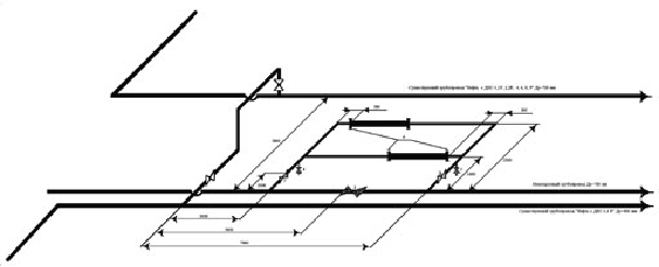 В цехе ППН Ватъеганского месторождения смонтированы две установки магнитной обработки жидкости УМП-325-005 в соответствии с ТУ 39-80400-007-99. Монтаж индукторов произведен на параллельных байпасных линиях одного из двух сырьевых трубопроводов (рис. 9).