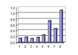 Оптимизированы массы пленок модификаторов электродов пьезокварцевых резонаторов при сорбции паров равновесных газовых фаз ароматобразующих веществ, оптимальный интервал масс пленок 15 – 20 мкг.