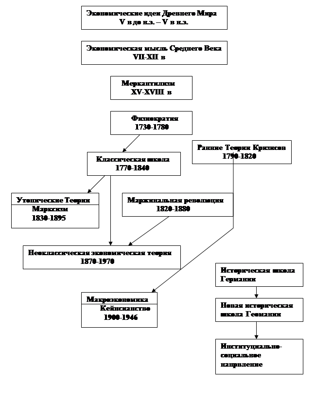 1. Экономическое учение дорыночной эпохи. Этот период включает экономические учения Древнего мира и средневековья. В это время экономические мысли выражали философы и религиозные деятели.. Однако ни мыслители древнего мира,ни мыслители средневековья не создали законченных систем экономических взглядов. Первая школа экономической науки – меркантилизм. Источником богатства меркантилисты считали торговлю. Богатство отождествлялось с деньгами, золотом.