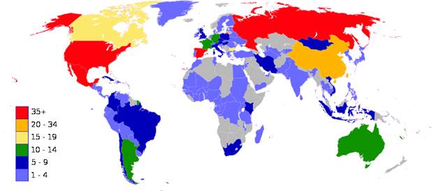 Наибольшее число ООПТ I-III категорий по классификации МСОП, имеется в Северной Америке: 1243, затем следует Океания, 1028 и др. континенты. По числу ООПТ с менее строгим режимом, относящихся к IV-V категориям, лидирует Европа – 2538 территорий; затем следует Азия, 1104, Северная Америка, 1090 и т.д. Процент земель полностью охраняемых природных территорий колеблется от 11,7 - Северная Америка – 11,7 до 4,7 процента (таблица 1). Эти различия не случайны, они объясняются размерами и природными условиями континентов, степенью их антропогенной освоенности, традициями заповедного дела, природоохранной культурой государств и населения. [8]