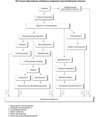 Рис. 1. Источники образования свободных радикалов при метаболизме глюкозы