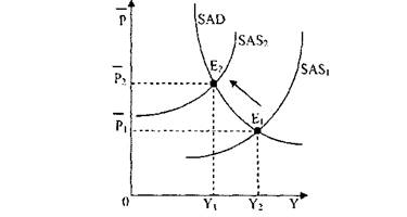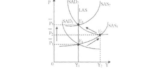 В этой ситуации стимулирование совокупного спроса со стороны правительства не имеет смысла. Па увеличение спроса предприниматели ответят ростом цен вследствие мгновенных требований работников о повышения заработков.