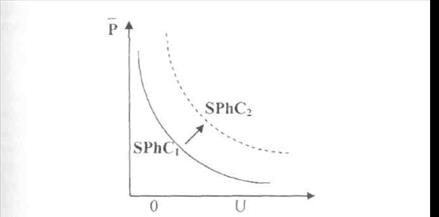 В данной ситуации каждая точка новой пунктирной краткосрочной кривой Филлипса (SPhC2) отражает более высокий уровень инфляции и безработицы по сравнению со сплошной кривой (SPhC1|).