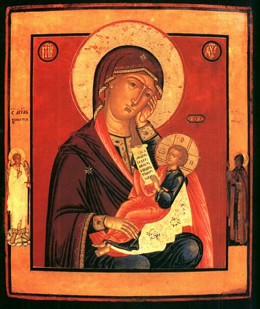 Дево, Владычице, Богородице, паче естества и слова родившая Единородное Божие Слово, Творца и Владыку всей видимой и невидимой твари, Единаго от Троицы Бога, Бога и Человека, соделавшаяся обителию Божества, вместилищем всякой святыни и благодати, в котором, по благоволению Бога и Отца, при содействии Святаго Духа, телесно обитала полнота Божества, несравненно превознесенная боголепным достоинством и преимуществующая пред всякою тварию, Слава и Утешение, и неизреченное веселие Ангелов, царственный венец апостолов и пророков, преестественное и чудное мужество мучеников, Поборнице в подвигах и Подательнице победы, уготовляющая подвижникам венцы и воздаяния вечныя и боголепныя, превысшая всякой чести, честь и слава преподобных, непогрешительная Путеуказательнице и Наставнице Безмолвия, дверь откровений и духовных тайн, Источник Света, врата вечной жизни, неистощимая река милосердия, неисчерпаемое море всех боголепных дарований и чудес, Тебе просим и Тебе умоляем, сострадательнейшую Матерь человеколюбивого Владыки, будь милостива к нам, смиренным и недостойным рабам Твоим, воззри благосердно на пленение и смирение наше, уврачуй сокрушение душ и телес наших, разсей видимых и невидимых врагов, будь для нас недостойных прред лицем врагов наших крепким столпом, бранным оружием, сильным ополчением, Воеводою и непреоборимою Поборницею, покажи ныне на нас древния и чудныя милости Твоя, да познают беззаконные враги наши, что Сын Твой и Бог един есть Царь и Владыка, что Ты воистину Богородица, родившая по плоти Истиннаго Бога, что все Тебе возможно, и чего не восхощешь, Владычице, имеешь силу все сие совершить на Небе и на земли, и на всякое прошение даровати что кому полезно: больным здравие, сущим на мори тишину и доброе кораблеплавание.