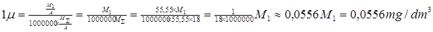 1 млн-1=1μ =([М1]/18) (мг/л)→ 0,0556·[Мпр] (мг/л), (1)