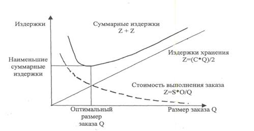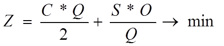 Оптимальный размер заказа получается при минимальных суммарных издержках по управлению запасами (2):