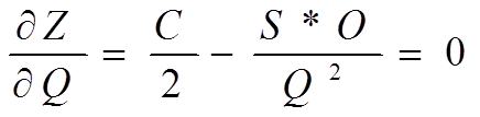 Приравнивая первую производную от функции суммарных затрат к нулю находим непосредственное значение оптимального размера заказа (3):