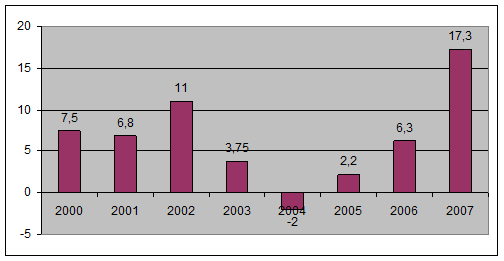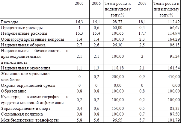 Проанализировать динамику расходов федерального бюджета РФ в 2000-2007 гг.;