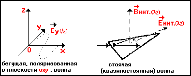 Рис.2. Схема возникновения "стоячих" электромагнитных волн в диэлектрической плоской фигуре треугольного вида на плоскости