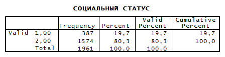 Группа один в таблице – респонденты с низким социальным статусом, бедные и очень бедные, группа 2 включает в себя остальных – богатых, обеспеченную прослойку, и тех кто находит свое положение удовлетворительным, то есть средний и высший классы.