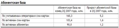 Прирост количества активных абонентов за 2Q 2007 года составил около 24% от прироста количества учитываемых операторами SIM-карт