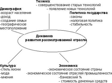 · К технологическим факторам относят в первую очередь темпы научно-технического прогресса в разных отраслях науки. Научные открытия могут способствовать как появлению новых отраслей промышленности, так и закрытию старых, поэтому воздействие технологических факторов можно оценивать как процесс создания нового и разрушение старого. Практика показывает, что основные возможности для организации связаны с этим блоком факторов. Ускоряющиеся технологические перемены укорачивают среднюю продолжительность жизненного цикла изделия. Таким образом, появляется необходимость прогнозировать перемены, обусловленные появлением новых технологий.