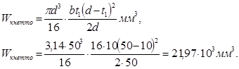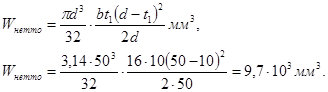 Момент сопротивления изгибу сечения нетто при d=50мм, b=16, t1