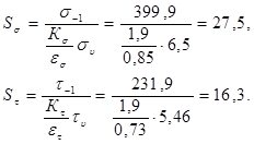Уточненный расчет состоит в определении коэффициентов запаса прочности s для опасных сечений и сравнении их с требуемыми значениями [S]. Прочность соблюдена при S ≥ [S], где [S]=2,5