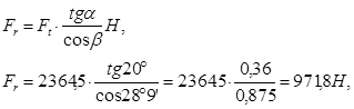 Ведомый вал несет такие же нагрузки, как и ведущий: Ft