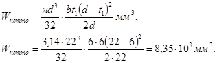 Момент сопротивления сечения нетто при d=22мм, b=6, t1