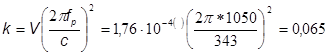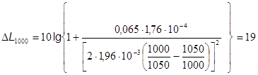 Таким образом, данный элемент глушителя производит эффективное глушение на частоте f=1000 Гц.