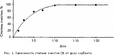 Зависимость степени очистки С В от дозы сорбента показана на рис. 1.
