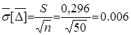 Визначимо середнє квадратичне відхилення середнього арифметичного: