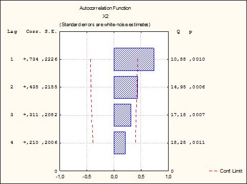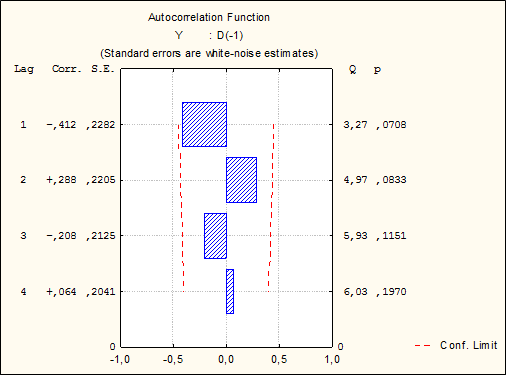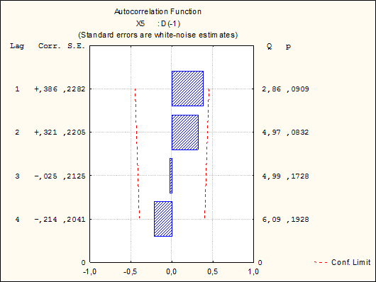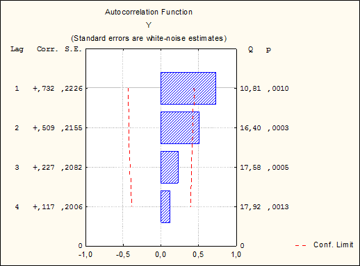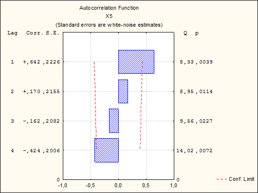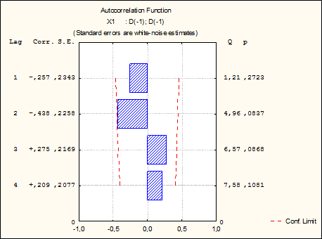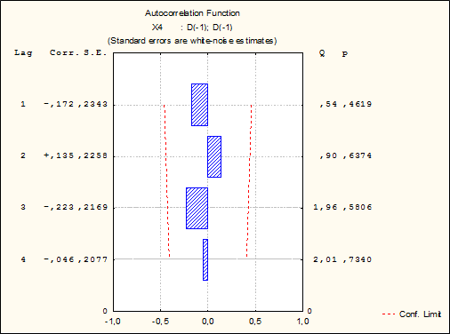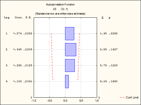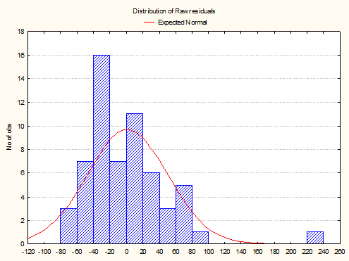 С помощью гистограммы и графика на нормальной вероятностной бумаге делаем вывод о том, что распределения остатков близко к нормальному закону распределения. Следовательно, можно проанализировать выполнение условий Гаусса-Маркова.